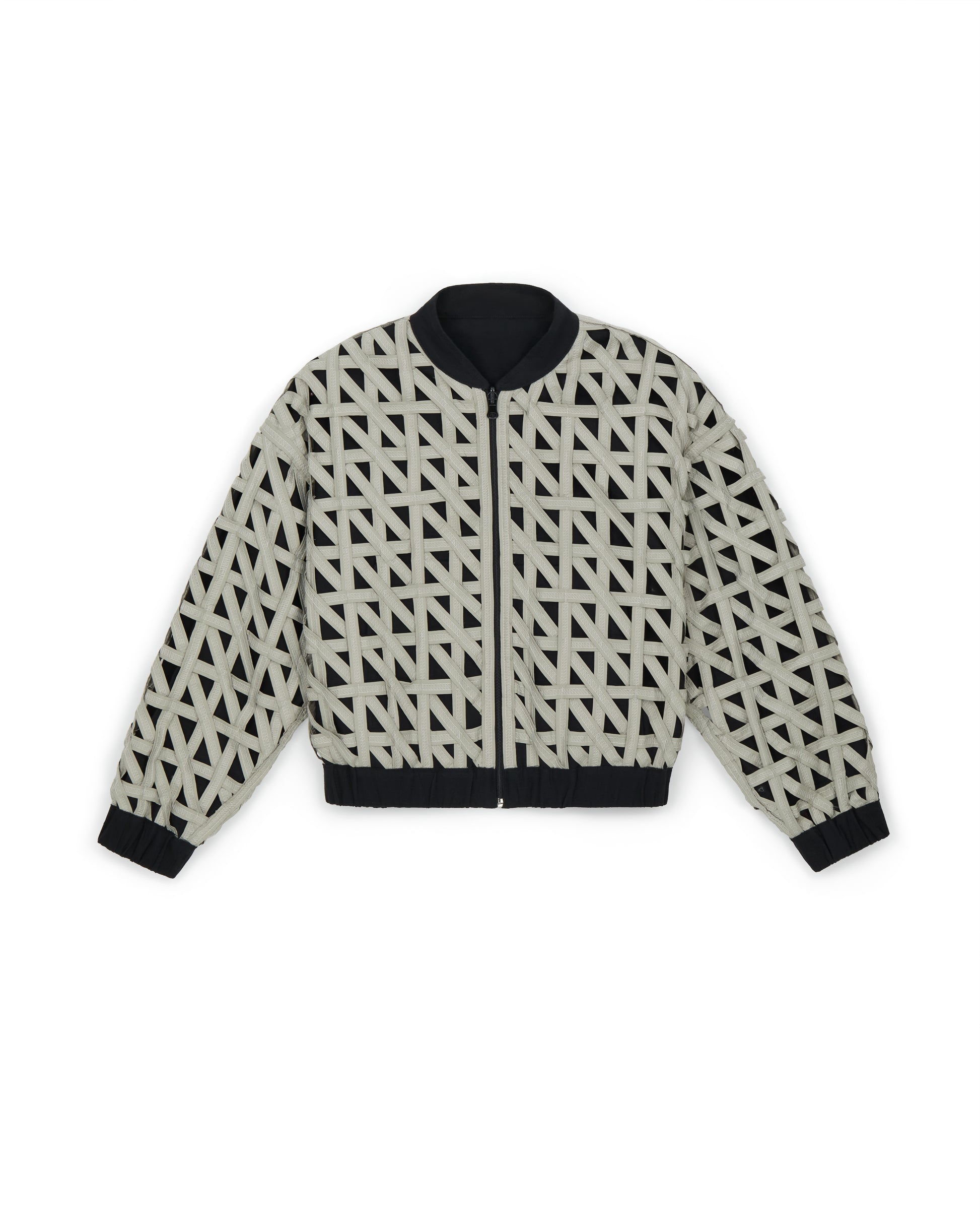 - Black Linen Reversible two way zip crop jacket with cream taffeta woven and stitching.